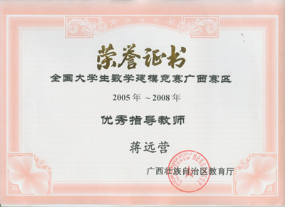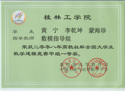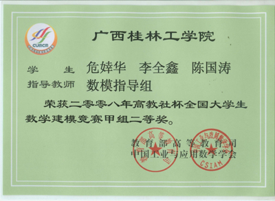 近日,2008“高教社杯”全国大学生数学建模竞赛结果揭晓,我院以荣获国家一等奖1个,二等奖4个,广西赛区一等奖5个、二等奖12个、三等奖6个的优异成绩名列广西前茅。同时,我院获得“2005——2008年全国数学建模竞赛广西赛区优秀组织学校”荣誉称号。数理系林亮教授获得“全国数学建模竞赛广西赛区优秀组织工作者”荣誉称号,数理系刘筱萍、蒋远营两位老师获得“全国数学建模竞赛广西赛区优秀指导教师”荣誉称号。 我院一直非常重视数学建模竞赛活动,近年来学院结合专业特点,大力开展学生专业技能竞赛活动,为学生提供了一个学以致用的平台,调动了学生专业学习的兴趣,提高了学生的专业素养、创新能力和职业竞争力。为更好的参加该项赛事,学院开设了数学建模公共选修课,精心安排数理系骨干教师对学生进行指导和培训。近四年来,我院共组织了77个队参赛,获得全国一等奖4个,二等奖14个,各级获奖63个队,获奖率82%,名列广西首位。 在学院教务处、学院团委等有关单位的大力支持下,数理系制定了《2008年全国大学生数学建模竞赛参赛方案》,数学建模指导小组对参赛小组进行了精心培训,指导老师不惜放弃暑假休息时间培训参赛队员。我院大学生在比赛中迎难而上,展现勇于拼搏、团结合作的良好精神风貌,并交出了一份优异的答卷,为学校争得了荣誉。