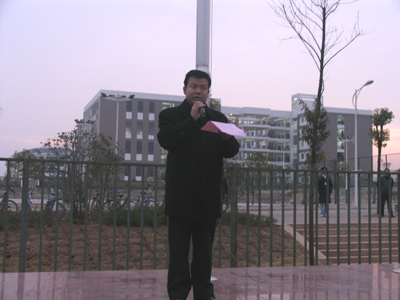 辞旧岁,迎新年。迎着2009年第一缕曙光,鲜艳的五星红旗在我院雁山校区上空冉冉升起。元月1日上午七点,雁山校区全体师生在运动场举行了迎元旦升国旗仪式。学院党委副书记、纪委书记赵君出席升旗仪式并讲话。 赵君副书记首先代表学院党委、行政希向大家致以节日的问候和诚挚的祝福。在总结了我院2008年的工作成果后,赵君副书记指出,学院所有这些成绩的取得,都得益于全校上下的齐心协力、奋力拼搏,都凝聚着我院所有师生员工的智慧、心血及汗水。伴随收获的喜悦,满怀奋进的豪情,送走了硕果累累的2008,我们信心百倍的迎来了充满希望的2009年。一元复始,万象更新,今天是新的一年的开始,从今天起,我院新一年的工作也正式开展开来。最后,赵副书记希望桂工人以奋发有为、只争朝夕的精神共同谱写桂工更加辉煌的明天!