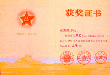 我院赵前锟副教授雕塑作品《南京记忆—1937.12.13》在“庆祝中国人民解放军建军八十周年美术作品展”获奖