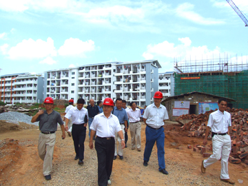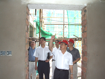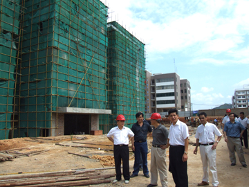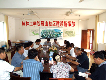 黎志逘书记带领大家分别到正在建设的学生宿舍、教学楼、科技楼察看在建情况,了解建设进度,他特别强调要保证安全第一、质量第一、速度第一。在雁山校区建设指挥部会议室,黎书记在听取了陈学军副指挥长对建设情况的介绍和各部门对雁山校区下一步工作的计划和安排后认为,雁山校区建设责任重大,使命光荣。他强调指出,一是对全部建设工程量要有科学、准确的估量;二要确定目标,落实任务,制订措施;三要进行任务分解,责任到人;四是突出重点,兼顾全盘,重点项目与配套工程要同步进行;五是各部门要围绕自身任务紧密配合。黎书记最后要求大家,要按照学院党委的部署和学校的既定目标,发扬特别能战斗的吃苦耐劳精神,增强责任感和使命感,顾全大局,齐心协力,同舟共济,全面做好雁山校区建设各项工作。