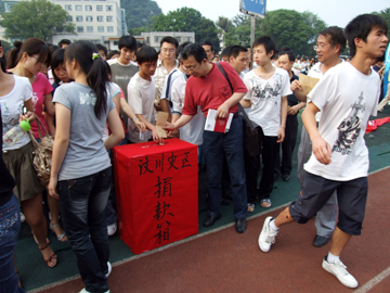 学院近万人参加向四川汶川地震灾区募捐仪式并捐款