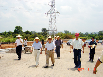 余益中厅长(前中)在黎书记(前左)、肖副院长(前右)陪同下视察建设工地
