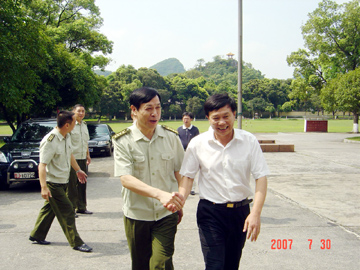 为庆祝中国人民解放军建军80周年,7月30日,在“八一”建军节来临之际,学院李祥清副院长率队冒着酷暑先后来到武警桂林市支队和广州军区综合训练基地,亲切慰问了部队官兵,对他们表示节日的祝贺,并给他们送去了慰问品。 慰问人员受到了部队首长的热情接待。武警桂林支队政委陈炜、支队长张勋玮和广州军区综合训练基地政委陶振庭、副政委周国祝、训练部部长蒋敬、政治部主任王光金、军训教研室副主任李念等分别与李副院长一行进行了友好座谈。李副院长代表学院党政感谢部队对学院军训和国防教育工作的支持和帮助,军地双方共同畅谈了友好联系,沟通了感情,进一步密切了军政军民关系,同时双方还就今年的军训和国防教育工作进行了协商。部队首长对学院的关心表示感谢,同时也表示要继续支持学院做好军训和国防教育等方面的工作。 学院参加慰问的有武装部部长、保卫处处长崔光仁,院长办公室副主任姜子亮,武装部副部长、保卫处副处长阎安明等。