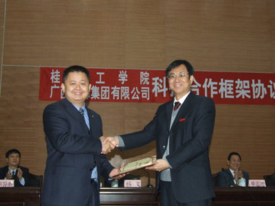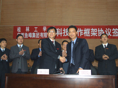 12月21日,我院与广西鱼峰集团有限公司的科技合作框架协议签约仪式在学院图书馆报告厅举行。学院院长赵艳林与广西鱼峰集团董事长韦宁分别代表双方在合作协议上签字。仪式上,合同总价达75万元的“水泥磨多重分选研磨节能技术应用”项目同时正式启动,学院材料与化学工程系陈平教授和广西鱼峰集团陆海总工程师签署了项目合同。仪式后,学院党委书记黎志逘和广西鱼峰集团董事长韦宁共同为校企共建的工程技术研究开发中心揭牌。校企双方的合作与发展由此开启了崭新的一页。 学院党委书记黎志逘在签约致词中介绍了学院改革与建设的成绩。他指出,近几年,学校在教学、科研、管理、学科建设、师资队伍建设、人才培养、社会服务等方面取得了显著的成绩,办学规模、办学质量和办学效益显著提高,各方面工作取得了长足进步;学校现有的学科专业中有60%属于广西工业化、城镇化建设和北部湾经济开发的重点领域,在为广西培养有色金属开发和利用、地质灾害防治、防灾减灾工程资源节约和环境保护、材料科学与工程城镇化建设等高级工业人才方面,不仅具有区内其他高校难以替代的特殊作用,而且在培养经济管理和旅游管理高层次专业人才和社会服务方面也具有很大优势。他还特别介绍了学校的材料与化学工程学科目前已经拥有一支较强的科研队伍、较好的科研技术条件和较高的研究实力,并在全区享有较高的声誉。黎志逘书记在发言中指出,广西鱼峰水泥集团作为国家重点扶持和华南地区最具影响力的水泥行业著名企业和广西重点企业,以其优异的质量和品质享誉海内外,具有很强的研究开发能力和市场拓展前景,能够与广西鱼峰集团在科技研发、人才培养、员工培训等方面开展合作,是充分发挥校企双方的优势和特色,加强学校与企业合作,教学与生产结合,校企双方互相支持、互相渗透、双向介入、优势互补、资源互用、利益共享,实现技术创新、管理创新,教育与生产可持续发展的重要途径,也是推动广西水泥行业产学研结合的良好典范,将为我们校企双方更好地发展提供良好机遇和发展空间。 广西鱼峰集团总经理杨义在随后的致词中说到,科学技术是第一生产力,企业间的竞争,最终是由产品背后所凝聚的技术支撑决定的,谁占领了技术制高点,谁将会是全球经济危机中生存下来的强者。水泥是一项传统产业,通过和桂林工学院合作,用高新技术改造和提升水泥传统产业,将是鱼峰公司在未来的市场竞争中打造核心竞争力的有力方式。桂林工学院作为广西教育科技战线的主力军,具有强大的科技优势、人才优势和创新优势。广西鱼峰集团期待以签署框架合作协议为新的起点,与桂林工学院一道把握产学研合作创新的关键环节,不断提高产学研合作创新层次和工作水平,使桂林工学院越来越多的科研成果在鱼峰生根发芽、开花结果。鱼峰集团将竭诚相待、竭尽所能,努力提供产学研合作一流的环境、一流的服务和一流的发展空间,争取把鱼峰集团和桂林工学院的产学研合作建设成广西校企合作的典范。 签约仪式由学院党委副书记张学洪主持。仪式签订之前,赵艳林院长还向广西鱼峰集团董事长韦宁、总经理杨义颁发了我院客座教授聘书。在主席台上就座的学院副院长阮百尧、院长助理华桂林、党(院)办主任莫坷、材料与化学工程系主任韦春,广西鱼峰集团有限公司技术研究中心副经理李异胜、办公室副主任李绍新,以及参加仪式的学院各系(院)党总支书记、主任、院长,分管科技工作的副主任,有关职能部门领导,材料与化学工程系的教师和学生代表,一起见证了签约。