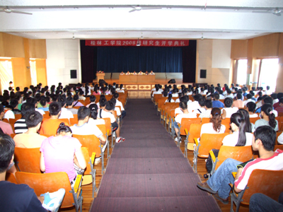 9月12日下午,我院08级研究生开学典礼在南校区礼堂隆重举行。学院院长赵艳林,副院长肖明贵出席典礼,典礼由学院研究生处处长刘康怀主持。 肖明贵副院长在开学典礼上致辞。他首先代表全院师生员工对08级研究生新同学来到桂林工学院这个大家庭继续深造表示热烈的欢迎,并向为他们成长付出辛勤汗水的父母、亲友、老师致以真诚的感谢!肖明贵副院长向研究生新同学们介绍了学院的办学历史、专业设置、师资力量、教学科研、人才培养等基本情况,并重点介绍了我院研究生教育的基本情况。他说,“经过20多年的不懈努力,我校研究生培养规模不断扩大,学科门类不断增加,招生类型不断拓展,培养质量稳步提高。特别在全校上下立志于申请更名大学、申请博士学位授予权、建设高水平大学的今天,研究生教育已成为推动我校整体事业发展的重要动力和关键所在。”他希望同学们在未来三年的宝贵时光里,一要百折不挠地夯实学术根基,二要克服守成思想,增强创新能力;三要理论联系实际,积极投身于社会实践。最后,肖明贵副院长祝愿各位同学身体健康、学业有成,祝愿同学们在学院度过充实、愉快、美好的时光! 土木系硕士生导师李景文博士代表广大教师勉励同学们要尽快融入桂工,热爱桂工,珍惜宝贵时间,以充沛的精力、刻苦钻研的精神完成学业,增长才干,成为我国经济建设、科技进步和社会发展所需要的高素质的优秀人才。 在校研究生代表在发言中和新同学们一起分享了他攻读研究生的心得体会。2008级新生代表在发言中表示,他将刻苦学习,努力实践,勤于思考,勇于开拓,严格要求自我,为国家、为桂工的发展做出自己应有的贡献。 开学典礼在《歌唱祖国》的激昂旋律中圆满结束。
