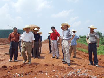 黎书记(右二)强调:“要充分利用好新校区原有绿化资源,因地制宜,搞好新校区绿化工作”