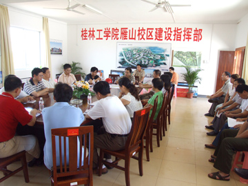 6月14日上午,学院党委书记黎志逘、副院长阮百尧到雁山校区检查指导工作,学院党办(院办)主任耿俊茂随同前往。 在学院副院长、雁山校区指挥部指挥长肖明贵和雁山校区指挥部其他同志的陪同下,黎书记一行深入施工一线了解新校区建设各项工程项目的进展情况,并就加快新校区道路工程建设、宿舍楼建设和做好新校区绿化工作、安全工作与清洁卫生工作作了指示。 检查结束后,黎书记在雁山校区指挥部办公室召集了雁山校区指挥部所有的同志开会。黎书记首先代表学院党委、行政和全校师生员工向战斗在雁山校区一线的指挥部30多位同志表示亲切的慰问,向他们在时间紧张、任务艰巨的情况下,为确保各项工程项目能够按期完成而付出的辛勤劳动表示衷心的感谢。黎书记要求指挥部的同志们要再接再厉,充分利用好距8月31日新生入住新校区所剩下的70多天时间,努力拼搏,进一步做好各项工作。一要充分认识自己肩负的重大责任和所从事的工作的重大意义;二要履行好自己的职责,尽心尽责、积极主动地完成好自己的本职工作;三要围绕确保9月1日雁山新校区按时开学对各项工作进行统筹计划,并做到明确责任,落实到人,件件都要抓好落实;四要服从领导,听从指挥,精诚合作;五要以对人民群众生命财产高度负责的态度,把好工程质量关。 肖明贵副院长要求指挥部的全体同志们一定要按照学院党委的要求和黎书记的指示,齐心协力,群策群力,奋力拼搏,圆满地完成各项工作任务,确保新生按时入住雁山新校区。