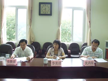 学院党委委员、人事处处长华桂林(右二)汇报工作