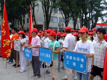 我院在2005年全国大中专学生志愿者暑期“三下乡”社会实践活动中取得突出成绩,被中央宣传部、中央文明办、教育部、共青团中央、全国学联联合授予“2005年全国大中专学生志愿者暑期‘三下乡’社会实践活动先进单位”荣誉称号。 2006年,为深入贯彻“三个代表”重要思想,落实中共中央、国务院《关于进一步加强和改进大学生思想政治教育工作的通知》的文件精神以及学院第二次党代会《关于加强和改进大学生思想政治教育行动计划》有关要求,让更多同学参与到社会实践中来,达到“受教育、作贡献、长才干”,促进青年学生成长成才的目的,学院团委组织开展了2006年度大学生暑期社会实践活动项目申报工作。在各系(院)分团委的积极宣传动员和配合下,广大同学积极参与立项,教师精心指导,圆满完成了立项申报工作,并取得了良好的效果。申报项目不仅做到了内容充实,而且做到了志愿服务、政策宣讲与调查研究相结合,紧扣今年社会实践团队荣辱观宣讲、新农村政策宣讲、科技兴农,关爱留守儿童、建设和谐社会的主题,落脚在基层,旨在解决基层生活、生产中的实际问题,并争取建立社会实践基地。经过系(院)推荐,学院组织评审,共评出重点立项项目6项,一般自助立项项目4项。 2006年7月15日上午,我院举行了“2006年暑期‘三下乡’社会实践活动启动仪式”。启动仪式由学院团委副书记李辉主持。在启动仪式上,院团委书记辛立章介绍了2006年暑期社会实践活动的总体安排;学院党委副书记张学洪提出了希望和要求;接着,志愿者代表肖潇、指导老师代表冯广辉作了发言。最后,学院党委副书记张学洪、党办院办副主任耿俊茂、党委宣传部部长于海平、学工部部长熊英、院团委书记辛立章为各系(院)社会实践团队授旗,并为社会实践重点团队授书。
