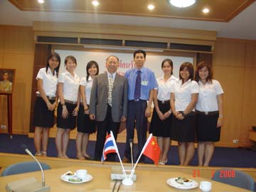 应泰国教育部和泰国皇家理工大学的邀请,学院党委阳国亮书记及国际交流处副处长陈文乾一行二人于2006年7月20日至7月22日 参加了由泰国教育部和泰国皇家理工大学等高校共同举办的世界大学校长峰会。 大会由泰国教育部部长主持,泰国总理他信(Thaksin Shinawatra)出席了大会并致开幕词。来自世界八十多个国家的一千多名代表出席了大会。香港前总督、现任英国牛津大学校长彭定康(Christopher Patten)爵士应邀在会上作了题为“二十一世纪世界高等教育面临的机遇和挑战”的主题讲座。阳书记一行还参加了“高等教育管理”、“教育创新方向”等三个专题讨论会,并就相关问题和与会代表进行了深入的讨论。 与会期间,阳书记还与韩国韩东大学校长金泳吉(Kim Yong-Gil)博士、泰国朱拉隆功大学校长昆英(Khunying)博士和英国利物浦大学校长庄蒙德.邦恩(Drummond Bond)教授分别就双方开展合作交流的可行性进行了会谈。 在泰国期间,访问团一行还应邀访问了泰国皇家理工大学、迈卓大学(Maejo University)、清迈大学(Chiang Mai University)和泰国皇母后大学(Mae Fah Lung University)等几所知名高校,并看望了曾在我院留学的泰国学生。