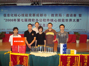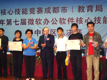 5月4日,2008年第七届国际办公软件核心技能世界大赛MOS(Microsoft Office Specialist)中国区总决赛在成都四川大学圆满落下帷幕,当日举行了隆重的颁奖典礼,成都市人大常委会副主任童若春、副市长傅勇林、市政协副主席杨兴平,微软培训全球授权机构美国思递波全球副董事长兼大中华区总管理处主席Randy Pierson,美国思递波亚太地区总经理Moses,美国思递波亚太地区全球渠道发展经理Scott,美国加州大学博士后、台湾师范大学博士生导师、微软办公软件全球认证中心全球资深顾问戴建耘教授和思递波大中华区总管理处副总经理颜家宇先生等出席颁奖仪式。