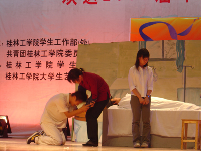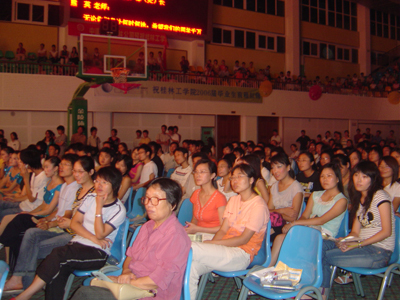 出席晚会的嘉宾有党委组织部周章明老师,党委宣传部饶建辉老师,团社工委书记万千老师,同时还邀请到了各系(院)分团委书记,桂林各高校学生会代表,我院各系(院)的分团委副书记、学生会主席。