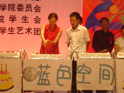“缘来一家人”篇章中,上演了院学生会和各系(院)学生会干部精心准备的话剧《爱》,真挚的亲情温暖了现场。当天过生日的毕业生们也在晚会中深深感受了家的温馨,在晚会接近尾声时万千老师和周章明老师亲自为毕业生切蛋糕并献上祝福,相信这将是一场毕生难忘的生日,与此同时老师们还为我们的十五位优秀毕业生颁发了毕业纪念册,最后所有的祝福融会在了院系学生干部合唱的《明天会更好》中。在舞台上空摇曳的片片礼花中,晚会至此圆满结束。