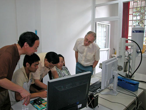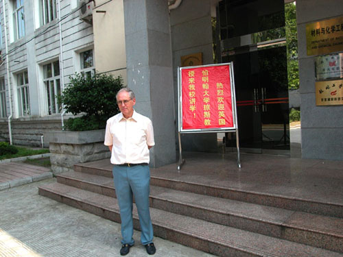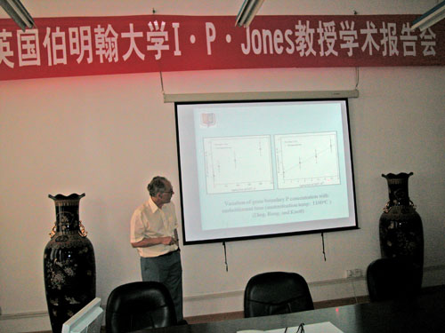 2006年6月10日下午3时,应有色金属材料及其加工新技术教育部重点实验室和材料与化学工程系邀请,英国伯明翰大学(University of Birmingham)冶金与材料学院I.P.Jones教授做了题为“The Chemistry of Grain Boundaries”的学术报告。材化系主任韦春教授主持了这次报告会。西安工业大学严文教授做了精彩的旁解。 在报告中,Jones教授首先介绍了透射电子显微镜(TEM)与扫描电子显微镜(SEM)的工作原理及差别,然后重点介绍了俄歇能谱(Auger spectroscopy)和电子能量损失能谱(EELS)在材料分析中的各自侧重点,接下来举例说明了透射电镜在分析材料氧化状态以及介电性能的测量方面的具体应用。报告结束后,Jones教授在相关人员陪同下参观了有色金属材料及其加工新技术教育部重点实验室。 I.P.Jones 教授1969年毕业于英国剑桥大学,获得硕士学位;1972年毕业于英国伯明翰大学高能电子衍射专业,获得博士学位;1996年至今为英国伯明翰大学冶金与材料学院教授,他还兼任国际电镜学会副主席,国际材料强度学会副主席,已发表 了160多篇学术论文,出版2本专著。