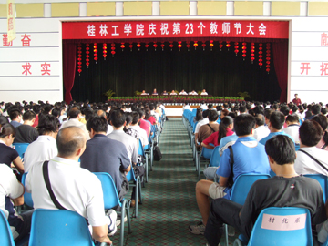 千秋功业,教育为本;国运兴衰,系于教育。9月7日下午,我院庆祝第23个教师节大会在体育馆三楼隆重举行。党委书记黎志逘主持会议,党委副书记、院长赵艳林在会上做了重要讲话。党委副书记、纪委书记赵君,副院长李祥清、阮百尧、肖明贵,党委委员、人事处处长华桂林出席会议并在主席台就座,学院全体教职员工参加了庆祝大会。 赵院长首先代表学院党委、行政向在教学、科研、管理、服务等岗位上默默耕耘、无私奉献的全体教职员工致以节日的祝贺和诚挚的问候!他说,正是有了全院教职工的不断追求、奋斗,才有了学院今天生机盎然、蓬勃向上的可喜局面。 会上,赵院长与全体教职工一起学习了胡锦涛总书记在全国优秀教师代表座谈会上的重要讲话精神。对深入学习讲话精神,他指出,要按照胡总书记“四点希望”的要求,认真做好工作,要爱岗敬业、关爱学生;要刻苦钻研、严谨笃学;要努力创新、奋发进取;要淡泊名利、志存高远,要静下心来教书,潜下心来育人,努力做受学生爱戴、让人民满意的教师。 他指出要加强师德建设,提高育人工作水平。他特别强调教师要爱岗敬业,要热爱自己的职业,全身心投入到教师工作中;要关注、关心、关爱学生;要严谨治学,执着追求和努力探索,不断提高自身素质、能力;要认真对待教学工作,努力做好教学每个环节的工作。要用高尚的情操营造一个教书育人的良好环境,为学生的健康成长树立一个好榜样。 赵院长还就做好雁山校区入住搬迁工作提出了具体要求:一要统一思想,凝聚力量,全力以赴做好搬迁工作;二要继续艰苦奋斗,甘于奉献;三是加强沟通协调,团结一致;四是把搬迁工作做细做实,落到实处。他希望在学院处于建设与发展史上的关键时期,全院教职工能以高度的责任感和事业心,全身心投入学院的教育教学工作,强师德,练师能,为学院的建设发展贡献自己应有的力量。 赵院长最后祝愿全体教职员工教师节快乐,身体健康、合家幸福!
