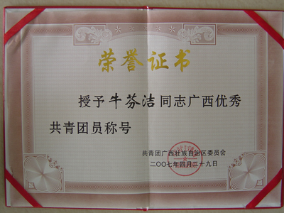 近日,共青团广西区委作出表彰决定:我院团委喜获“广西五四红旗团委”荣誉称号(全区仅有3所本科高校团委获此殊荣),土木工程系测绘05-2班团支部荣获“广西五四红旗团(总)支部标兵”荣誉称号,资环系勘技04-1班团支部荣获“广西五四红旗团(总)支部”荣誉称号,材料与化学工程系分团委书记黄甫堂同志荣获“广西优秀共青团干部”荣誉称号,学院团委委员、管理学院牛芬洁同学荣获“广西优秀共青团员”荣誉称号。