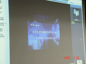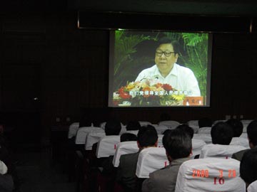 3月29日晚上,学院纪委组织副处以上领导干部及机关党总支全体党员在9501教室观看廉政教育录象片,进行反腐倡廉形势与任务的学习。该录象片是中央纪委副书记、监察部部长李至伦同志2005年在中央宣传部、中央直属机关工委、中央国家机关工委、教育部、解放军总政治部以及中共北京市委联合举行的报告会上所做的形势报告,题目是《关于反腐倡廉的形势和任务》。学院党委副书记、纪委书记唐善茂同志主持了本次廉政教育学习,学院党委书记阳国亮同志、副院长周德俭同志和大家一起观看了录象。