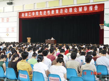 2005年7月18日上午,我院按照先进性教育活动实施方案的总体部署,在体育馆三楼召开保持共产党员先进性教育活动理论辅导报告会,学院全体在职教职工党员、离退休党员、学生党员共计1370多人参加了报告会,报告会由学院党委副书记张学洪同志主持,学院党委书记阳国亮同志做了题为《永保共产党员先进性 不断巩固党的执政基础》的理论辅导报告。 在历时两个半小时的报告会中,阳书记纵横国际国内形势,借鉴中外历史经验教训,从理论和实践的高度分析了开展保持共产党员先进性教育活动的重要性和必要性,学院开展保持共产党员先进性教育活动的紧迫性以及每个共产党员积极投身保持共产党员先进性教育活动的重要性。阳书记的报告语言生动幽默、内涵深刻、说理透彻,深深地打动了每一位在场党员的心。会后,许多党员认为听了阳书记精彩的辅导报告,进一步把握了保持共产党员先进性教育的指导思想、目标要求和基本原则,提高了思想认识,表示要把开展保持共产党员先进性教育活动和发扬“桂工精神”紧密地结合起来,奋发进取、开拓创新、立足岗位、无私奉献,充分发挥党员的先锋模范作用,扎扎实实做好工作,尽最大努力为党、为国家、为社会、为桂工的发展作出自己应有的贡献。