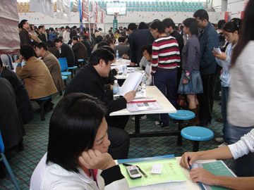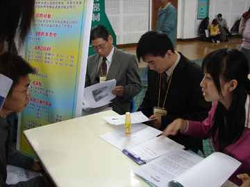 2005年11月26日,我院2006届毕业生第一次“双选”洽谈会在体育馆三楼举行。到会的用人单位共有70家,其中省外用人单位35家,桂林本地用人单位35家。共提供岗位604个,其中研究生33个;本科497个,资环系257个,土木系116个,材化系8个,电计系16个,管理学院64个,外语系11个,艺术设计系13个,旅游学院12个;专科74个。上千名学生参加了此次“双选”会。 据招生就业处副处长熊英介绍,我院2006届毕业生总计3821人,其中研究生96人,本科2449人,专科1276人。此次洽谈会需求专业面共43个,比往年要广,新增了10个,如:资源环境与城乡规划、工程管理、国际经济贸易、自动化等。2006年4月2日,我院将举行第二次毕业生“双选”洽谈会。