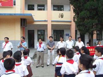 在“六一”儿童节即将来临之际,5月29日上午,学院党委书记黎志逘、院长赵艳林和副院长李祥清到学院附属小学进行慰问,为附小的学生们送上了节日的祝福和亲切的问候,并赠送了两台空调和600多册图书。 上午8点,赠送仪式在附小教学大楼前举行。3名少先队员为黎书记、赵院长和李副院长系上了鲜艳的红领巾,随后,黎书记和赵院长代表学院分别向附小赠送了价值15000元的两台空调和价值9600元的600多册图书。赵院长和李副院长在赠送仪式上致辞,祝小朋友们节日快乐、健康成长,努力学习,奋发向上,树立远大理想,早日成为祖国的栋梁。 学院党办(院办)主任耿俊茂,党委宣传部、统战部部长于海平,院办副主任姜子亮随同慰问。