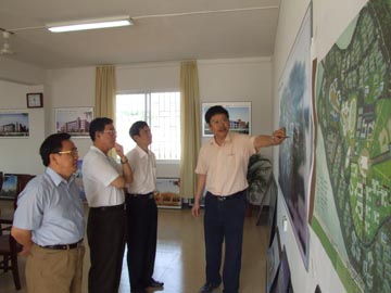 肖明贵副院长(右一)汇报雁山新校区总体规划