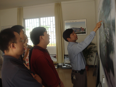 陈学军副指挥长(右一)向来访的资环系师生介绍雁山校区总体规划