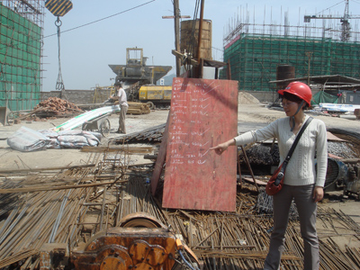工程部工作人员和监理公司工作人员在4#系部教学楼