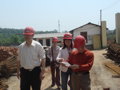 肖明贵副院长(左一)深入施工工地检查工程进度