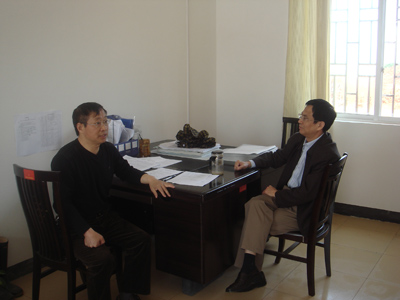 5月1日上午,赵艳林院长(右一)听取工程部刘宜河主任工作汇报