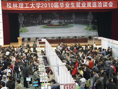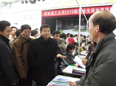 11月21日,我校2010届毕业生就业双选洽谈会在屏风校区体育馆隆重举行。受邀参加本次“双选洽谈会”的单位共210多家,提供岗位2400多个,覆盖我校所有专业。我校2010届毕业生约4000多人参会。 本次双选会本着以人为本的宗旨,各责任部门密切配合,精心组织,全力为我校毕业生和用人单位牵线搭桥,构建“供需见面,双向选择”的平台。上午9时,校长张学洪,校党委副书记、纪委书记赵君,党委副书记王赣华及各相关部门领导亲临现场指导就业工作。10时左右,见面会迎来了人流的高峰。各单位咨询台前围满了前来咨询的毕业生。特别是广西测绘局、广西区矿业建设公司、贵州有色地质勘查局分队等单位咨询台前都排起了长队,许多同学在现场就与用人单位签订了就业协议。据了解,此次双选会上,各类用人单位招聘时都十分注重毕业生的综合素质和实践能力,并在此基础上优先考虑专业成绩优秀的毕业生。他们对我校毕业生的总体素质表示满意。 这次参会单位数和岗位数与往年相比,非降反升,除了学校就业部门的努力外,更得益于我校“应用型”人才培养模式的确立。近年来,学校狠抓教育教学质量,全力推进教育教学改革,将理论教学与社会实践相结合,努力提升学生的综合素质和实践能力,同时还注重对学生进行职业生涯规划指导与就业服务,从源头上抓就业工作,切实培养适合社会需要的“实用型”人才,深受用人单位好评,近几年来,全校毕业生的一次就业率均达90%以上,稳居广西高校前列,被连续评为广西高校毕业生就业工作先进单位。 广西日报、桂林日报、桂林电视台等各大媒体记者对本次双选会进行了现场采访。