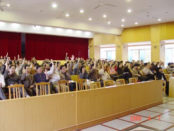 2006年4月7日下午,微风和煦,春意盎然,学院六届五次教代会、七届工会会员大会的代表准时步入会场,各位代表将审议并表决院长工作报告、财务年度报告、“十一五”发展规划等几个主要报告。 大会首先由各组负责人进行了会议各项报告审议情况的汇报.在汇报中各位代表认为学院2005年是取得重大进步与成绩的一年,在过去的一年里,全体教职工在学院党委及行政的正确领导下,积极进取,奋力拼搏,为落实“两申”目标做出了很大的成绩,院长报告客观务实。对2006年的工作计划代表们认为切实可行,为广大教职工指明了很好的方向。对于2005年的财务结算及2006年的财务预算方案,代表们也进行了认真审议,一致认为,学院近年发展很快,经费是很重要的保障,学院积极采取广开财源、增收节支的办法,充分体现了学院的勤俭办学理念,对2006年的财务预算方案表示认可。认为“十一五”发展规划思路清晰,数据具体,结构平衡,鼓舞人心,催人奋进,为学院下一个五年发展打下了坚实的基础。对于设立系院级教职工代表大会及教职工申诉制度表示欢迎,一致认为应落到实处,发挥代表及大会制度的作用,不断推动学院建设事业。在肯定成绩的同时,代表在审议报告时也提出:第一,应加快建立节约型校园管理机制,充分发挥人、财、物的作用,做到人尽其才,物尽其用,杜绝浪费。第二,应大力加快人才工程建设,加快培养和引进力度,建立合理的人才评价机制。第三,要重视教育教学质量的提高,要多方位加强教学质量建设,整合教学资源,打造学院质量的品牌效应。第四,要加大力度整治校园安全及文明建设,着力构建和谐校园,推进校园精神文明建设,在大学生中加强社会主义荣辱观的教育。第五,要不断提高办事效率,实行项目责任制,推进办事效率的不断提高。第六,要充分考虑教职工福利待遇提高与学院发展的关系,要考虑到学院各方面人员的得益,做到兼顾公平,对离退休人员待遇、教学工作量考查、科研工作量核定、医疗保健等等制度进行健全和完善,不断调动大家的工作积极性。 在各小组长发言完毕后进行大会表决,一致通过了《院长工作报告》、《年度财务工作报告》、《学院“十一五”发展规划》、《院系教职工代表大会暂行规定》、《教职工申诉条例》等五个文件。 党委书记阳国亮作了发言。他说,各位代表在这次会议上很认真地参与会议的各项内容,体现了关心学院发展事业的心情。他希望各位代表在会议结束后将会议精神传达到每一位教职工,进一步凝聚力量,统一思想,加快进步。他还指出,今年教代会、工会要重点抓好三件大事。第一,要把握好形势,进一步总结经验,加快发展步伐;第二,要在全院范围内大力推进社会主义荣辱观教育,加强“桂工精神”教育,把“八荣八耻”教育跟“桂工精神”及学院发展大计结合起来,推进学院建设步伐;第三,要充分发挥工会职能,维护教职工权益,把工会工作与学院中心工作结合起来,充分听取代表及教职工们的意见,照顾和平衡各岗位人员的利益,创造条件落实各项建设与提案。 最后,大会在庄严的国际歌声中胜利闭幕。