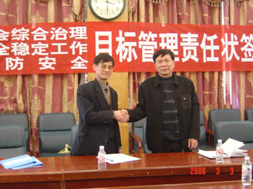 最后,李祥清副院长代表学院分别与34个系部处签订了《桂林工学院2006年消防安全目标管理责任书》和《桂林工学院2006年社会治安综合治理和安全稳定工作目标管理责任书》。