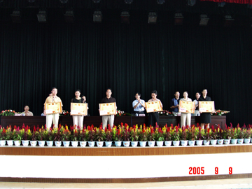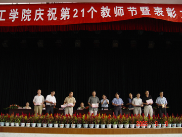9月9日下午,我院庆祝第21个教师节暨表彰大会在体育馆三楼礼堂隆重召开。大会由学院院长赵艳林主持,学院党委书记阳国亮,党委副书记唐善茂、张学洪,学院副院长周德俭、李祥清、肖明贵出席了大会并在主席台上就座,全院教职工参加了大会。 在大会上,唐善茂副书记宣读了《关于表彰2004-2005年度“教书育人先进集体”、“优秀教师”、“先进教育工作者”的决定》,随后学院领导为获奖先进集体与个人颁奖。颁奖仪式结束后,先进个人代表资环系教师朱义年作为先进个人代表作了发言,他说,要实现学院第二届党代会提出的新的奋斗目标,就需要学院的每一位教师增强自己的光荣感、责任感和使命感,进一步弘扬“桂工精神”,强化“校兴我荣,校衰我耻”的主人翁意识,在日常的教学工作中,真正做到“爱校如家、不甘人后、艰苦创业、自强不息、团结协作、顾全大局、敬业奉献、开拓创新”,不断为学院的改革、发展和稳定作出自己应有的贡献。他表示,要在新学年中更加努力工作,热爱教育、关爱学生,做让人民满意的教师。社科部德育教研室牟艳娟老师代表先进集体也作了发言。 学院党委书记阳国亮发表了讲话。他首先代表学院党委、行政向在教学、科研、管理、服务等岗位上默默耕耘、无私奉献的全体教职员工致以节日的良好祝愿和诚挚问候,向受表彰的先进集体和个人表示热烈的祝贺,向为我院的发展与建设作出重要贡献的老领导、老教师、老同志致以崇高的敬意,向刚到我院工作的新教师表示热烈的欢迎,同时,还向所有关心、支持、帮助我们的朋友,表示最衷心的感谢。 阳书记还讲了以下三个问题:一是要深入开展以“爱与责任”为主题的师德建设活动;二是认真贯彻落实第二次党代会精神;三是继续深入开展保持共产党员先进性教育活动。他号召全体教职员工,要继承和发扬桂工的优良传统,在全院范围内进一步提倡和发扬新的战略发展机遇所需要的桂工精神,与时俱进,开拓创新,团结奋斗,奋发有为,以学院发展和教育事业的进步为己任,抢抓机遇,乘势而上,以饱满的热情投入到桂工建设发展中去,实现桂工新的跨越发展,谱写新世纪新时期桂工建设发展的新篇章,迎接桂工更为辉煌灿烂的未来。 学院院长赵艳林在大会结束语中希望全院教职员工要认真贯彻落实学院第二次党代会和阳书记的讲话精神,大力弘扬桂工精神,以先进为榜样,努力学习,勤奋工作,为谱写新世纪、新时期桂工建设发展的新篇章,实现桂工新的跨越发展作出更大的贡献。
