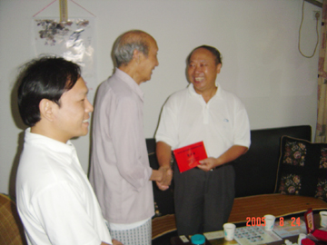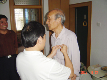 为纪念中国人民抗日战争暨世界反法西斯战争胜利60周年,近日,受自治区党委、区人民政府委托,学院党委书记阳国亮、副书记唐善茂在组织部部长赵君、副部长莫坷、离退处处长陈开亿、副处长于尔佐的陪同下,走访慰问了我院抗战老同志、老战士柳林和高善玲,给他们佩带了由中共中央、国务院、中央军委颁发的中国人民抗日战争胜利60周年纪念章和送去了由自治区党委、区人民政府发的慰问金,并分别与他们合影留念。 当阳书记来到抗战老同志柳林家时,亲切地握着柳林同志的手说:“今年是抗日战争胜利60周年,您老为夺取抗日战争胜利、新中国的成立和民族的独立,做出了贡献,为学校的建设与发展奉献了毕生精力,党和人民是不会忘记你们的。” 当阳书记来到抗战老战士高善玲家时,双手紧紧地握住高老的手说:“过去你们不怕流血牺牲,为抗日战争的胜利作出了贡献,党和人民不会忘记。”党委书记阳国亮同志再三叮嘱两位老人一定要注意保重身体,祝他们健康长寿。 两位抗战老同志、老战士激动地说,感谢党和政府对他们的关心和爱护。对学院领导在百忙之中登门慰问他们表示衷心地感谢。