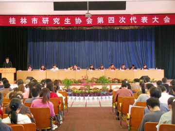 11月13日下午,桂林市研究生协会第四次代表大会在我院南校区礼堂隆重举行,此次会议由桂林工学院研究生会承办。学院党委副书记唐善茂、学工处处长梁军、研究生处副处长饶似涓、桂林电子工业学院研究生部副主任顾正飞、广西师范大学研究生处副处长、研究生思想政治教育办公室主任陈闻等领导出席了大会。大会在庄严的国歌声中拉开帷幕,唐书记作了热情洋溢的讲话,他首先对历届研究生协会所做的工作予以高度评价,并对我国当前研究生教育的形势作了分析;同时也对新的研究生协会成员班子提出了希望和要求,希望新一届研究生协会能够继续团结协作,办出自己的特色,使之更好的为广大研究生服务,动员广大研究生积极参加广西的建设,为广西的发展作出自己的贡献。 会上,各位代表审议通过了桂林市研究生协会第三届委员会的工作报告。来自桂林工学院、广西师范大学、桂林电子工业学院的研究生代表也分别作了发言,之后大会采用无记名投票的方式选举产生了桂林市研究生协会第四届委员会,我院朱竹江同学当选为桂林市研究生协会第四届委员会主席。 选举结束后,来自三校的文艺表演者向各位代表奉献了二胡演奏、美声独唱、三人小合唱等精彩纷呈的节目。