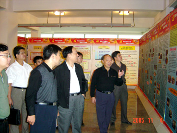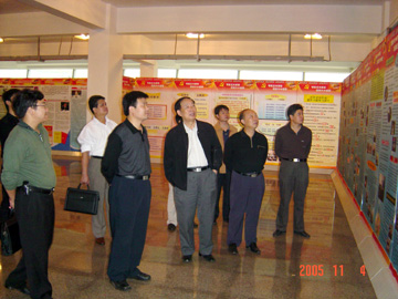 2005年11月4日上午,自治区先进性教育活动第七督导组组长奉江、督导员彭绍关,自治区高校工委督导组联络员唐东升,自治区高校工委督导三组督导员张月光、农荣前,到我院检查工作。督导组的领导首先到体育馆三楼观看了我院开展先进性教育活动工作成果展,接着,到材化系、艺术系检查了整改工作情况,最后,在先教办听取了我院党委书记阳国亮作的工作情况汇报。奉江组长从四个方面对我院的先进性教育工作给予了肯定:一、党委高度重视,三级领导工作到位,责任到位;二、整改工作认真细致,计划周密,措施得力,要求明确;三、在工作方式方法上有创新,如建立党建长效机制很有特色;四、坚持边议边改边整边改取得了实效。