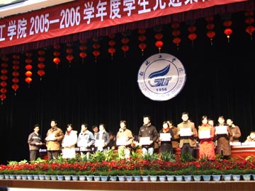 2007年1月4日下午,伴随着庄严的国歌,我院2005-2006学年度学生先进集体、先进个人表彰大会在体育馆召开,学院党政领导、党委委员,有关职能部门领导、系院领导、全体政工干部,受表彰的96个学生先进集体代表、2600多名各类学生先进个人代表以及其他学生代表参加了表彰大会,会议由学院党委副书记、院长赵艳林主持。 学院党委副书记张学洪在会上作了题为《坚定信念 立志成才 为把自己塑造成为适应社会发展的高素质人才而努力学习》的讲话。在讲话中,张副书记首先代表学院党委、行政向受表彰的96个先进集体和2600多名各类先进个人表示热烈的祝贺,向呕心沥血、辛勤耕耘在人才培养第一线的教师、学生辅导员及其他教学、管理和服务人员致以崇高的敬意和衷心的感谢。在总结我院学生工作的成绩时他指出,在过去的一年里,我院师生紧密围绕学院党政中心工作和高素质人才培养目标,脚踏实地、开拓进取,认真落实科学发展观,扎实推进各项工作稳步前进,学院的教学管理水平日趋规范,学生的综合素质有所提高,其成绩主要表现在学生教育服务力度加强,广大同学思想道德素质提高,学风状况有了根本改观;校园文化活动和科技实践活动主题突出,学生创新意识增强,实践能力提高;学生助学体系进一步完善,助贷工作和心理健康教育工作创新开展等方面。张副书记也指出了我院学生中存在的问题和不足,并对广大同学提出了期望和要求,他期望大学生们:一是要坚定信念,立志成才,做有理想、有信念适应时代要求的“四有”新人;二是要努力学习,勇于实践,做勤思考、敢创新、全面发展的复合型建设者;三是要加强修养,砥砺品行,做文明修身、讲究道德的新时代大学生;四是要热爱学校、强化责任,做推动良好校风、学风形成的学生骨干。 学院副院长李祥清宣读了有关先进集体、先进个人的表彰决定,在主席台前排就坐的领导分别向2005-2006学年度学生先进集体和先进个人颁发了奖牌和荣誉证书,材化系材料03-1班张庆同学和数理系统计学03-1班吴丽娟同学分别代表获奖集体和个人发言,介绍了学习经验和体会。 学院党委书记黎志逘在会上作了讲话,黎书记指出,要高度重视学生工作,一是要正确认识做好学生工作的重要意义,要认识到做好学生工作是培养合格人才的需要、是学院发展壮大的需要,也是构建社会主义和谐社会的需要。二是要创新工作方法,扎实有效地做好学生工作。要研究问题,首先是要学习掌握做好学生工作的有关理论方法,其次是要研究市场经济条件下各种新情况、新问题;要心平气和、平等相待地做好学生工作;要扎实工作,不要蜻蜓点水、泛泛而谈。三是要切实加强对学生工作的领导,齐抓共管,把学生工作摆在重要位置。要经常研究发现并及时解决问题,创造学生喜闻乐见的方法,加大对学生工作的投入。