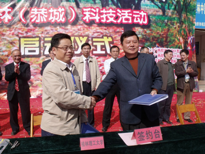 为了深入学习实践科学发展观,服务县域经济和社会主义新农村建设,继续深入实施“高校三对创新行动计划”,2009年11月3日,由自治区教育厅、自治区科技厅、桂林市人民政府联合主办的 “2009·高校三对创新行动计划—— 桂林(恭城)科技活动”在恭城县文化广场隆重举行。自治区教育厅副厅长黄宇、桂林市政协副主席李世荣等领导出席本次大会,我校吴志强副校长在科技处邹正光处长及相关工作人员的陪同下,参加此次大会。 “高校三对创新行动计划”是我区高等学校为了服务地方经济社会开展的“校企一对一科技合作”、“校市(县、区)一对一科技帮扶”、“校行(行业、部门)一对一科技培训”和“高校科技大篷车”活动等4个方面的专项科技活动。此次共有32所区内高校的100多个科技工作者参加了“校市(县)一对一科技帮扶”和“高校科技大篷车”的活动。 在活动开幕式上,吴志强副校长代表我校与恭城县政府签订校县合作框架协议,我校相关部门负责人分别与有关企业签订合作框架协议书并和企业签订科技帮扶项目协议书。开幕式还进行了文艺汇演,由科技处和校团委组织的我校大学生艺术团服饰队带来了精彩的服饰表演,赢得了在场观众的热烈掌声。随后,按照会议的相关议程,我校吴志强副校长在分会场主持了——生态与文化旅游产业的主题讨论会,分别和与会的区内高校专家代表以及恭城县相关部门负责人进行了座谈。 此次“高校三对创新行动计划”是我区高校和桂林市、恭城县实行校市(县)科技合作,以“为促进农民增收、企业增效、财政增长做贡献”为主题的科学发展观实践活动,同时是我校立足地方经济发展,发挥我校专业优势,坚持在服务中求发展,在发展中提升学校实力的又一次科技实践活动。