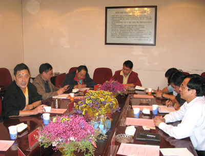 昆明理工大学何玉林书记(左一)等领导与赵艳林书记(右一)一行座谈