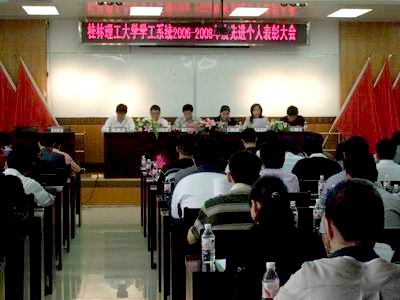 10月24日上午8时30分,我校学工系统先进个人表彰会在屏风校区体育馆附楼党校教室隆重举行。 会议由学工部(处)部(处)长熊英主持,学校党委副书记王赣华参加了会议并给先进个人代表颁奖。会上,王副书记做了重要讲话。他首先对我校学生工作取得的长足进步给予了充分的肯定,对全体学工干部、辅导员、班主任做出的积极奉献给予了高度的评价,尤其热情赞扬了先进个人做出的突出贡献。王赣华副书记还对长驻雁山的学工干部所做出的奉献表示了深切的关怀。随后,他深刻地分析了当前高校学生工作所面临的新形势、新挑战和新任务。最后,王副书记对全体辅导员和班主任提出了六点希望。希望我校的辅导员、班主任能忠于职守,爱岗敬业;以身作则,为人师表;以情感人,尊重学生;顾全大局,密切协作;引导文化,建设文化;重视安全稳定。 会上,我校优秀辅导员、人文社会科学学院团委书记李雨老师,2008年度广西区高校优秀班主任,土木与建筑工程学院杨婷连老师作了经验介绍。 参加会议的还有校团委、人事处、学工部(处)负责人及各学院分管学生工作的党委副书记和年度先进代表以及第一期辅导员、班主任培训班的学员。