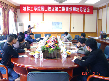 目前,我院雁山校区第一期建设工作稳步推进,第二期建设的相关工作也随之启动。3月15日,由雁山区人民政府组织的“桂林工学院雁山校区第二期建设用地论证会”在教八楼会议室召开,来自桂林市发改委、建规委、国土资源局、林业局、环保局、农业局和雁山区发改局、建设局、国土资源局、林业局、农业局的领导,按照新土地法对土地规划的要求,对我院雁山校区第二期建设用地征收土地《土地利用总体规划》调整进行了各方面的论证。我院雁山校区建设指挥部副指挥长陈慕杰在论证会上向领导们介绍了第二期建设用地的规划方案,并同时代表学院对桂林市各级政府和部门对我院第一期工程建设的支持表示感谢,希望各级政府和部门继续支持学院的建设。