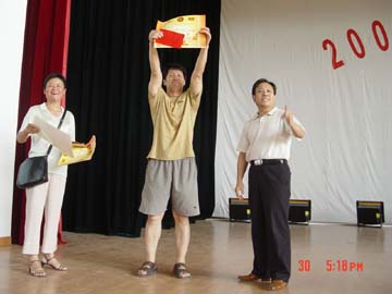 6.颁奖仪式。院党委副书记、院工会主席唐善茂教授给冠军队材化分会颁奖状和奖金。