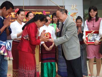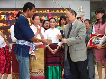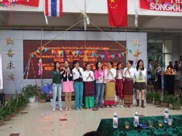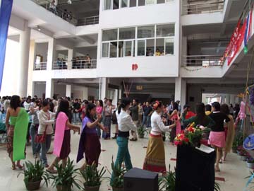 异国他乡情意浓,欢歌笑语乐尧天。4月15日下午,春和景明的屏风校园掩藏不住勃勃的生机。我院大学生与泰国留学生在教九楼大厅欢聚一堂,共同欢度泰国新年——宋干节。古风古韵的泰国传统民族舞蹈,赢得我院大学生们的阵阵掌声。学院党委书记阳国亮出席了联欢活动并发表了重要讲话,带来了学院领导的亲切关怀与温馨的祝福。随着中泰民族文化的相互交融,两国学子载歌载舞,沉浸在节日的欢乐气氛中。 本次活动使身处异国他乡泰国留学生们,再次亲身经历和感受到来自中国人民的友谊及学院大家庭的温暖,进一步增进了我院学生对泰国的了解和友谊,对于促进我院与泰国的合作办学具有积极的推动作用。正是:屏风含笑舒清景,室有春风聚太和。