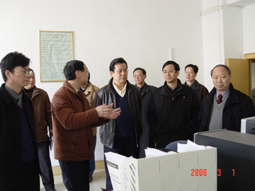 3月1日上午,自治区科技厅黎明智副厅长一行到我院检查指导重点实验室建设工作。随行成员还有发展计划处李昌华处长、桂林市科技局林业江局长等领导。我院领导阳国亮党委书记、赵艳林院长、张学洪副书记、周德俭副院长参加了本次工作汇报。 在学院二会议室,周德俭副院长向区科技厅领导汇报了我院近期重点实验室建设工作,并就学院结合“两申”目标,在重点实验室建设上的各项投入一一做了简明扼要的介绍。听完介绍后,自治区科技厅黎明智副厅长对我院的重点实验室建设工作给予了充分肯定,并在院领导的陪同下到材化系实地了解重点实验室建设情况。