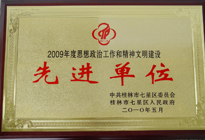 日前,中共桂林国家高新区工作委员会、中共桂林市七星区委员会、桂林国家高新区管理委员会、桂林市七星区人民政府召开表彰大会,对高新区、七星区2009年度“三个文明”建设先进集体和先进个人进行了表彰。我校荣获“思想政治工作和精神文明建设先进单位”、“普法依法治理先进集体”、“双拥工作先进集体”、“绿化管理工作先进单位”、“爱卫工作先进集体”。我校附属小学荣获“思想政治工作和精神文明建设先进单位”。郭文龙同志被评为“思想政治工作和精神文明建设先进个人” 和“普法依法治理先进个人”,周政萍同志被评为“普法依法治理先进个人”,苏玉英同志被评为“爱卫工作先进个人”。