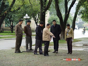 为确保我院以整洁干净的校容校貌迎接教育部评估专家组的到来,我院决定对整个校园进行一次环境大检查。下图为11月15日上午肖明贵副院长带领综合管理处、基建处、保卫处、后勤服务集团等部门的负责人在对校园环境进行检查。