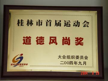 2004年9月25日桂林市首届运动会在团结的气氛中圆满结束,桂林工学院大学生体育代表团在首届市运动会当中精诚团结、密切协作、不畏强手、奋力拼搏,取得了令人振奋的优异成绩,获21金、10银、6铜共37块奖牌,获得大学生组金牌榜第一名,奖牌数第一名的优异成绩、代表团还获得了体育道德风尚奖、田径队获道德风尚奖。