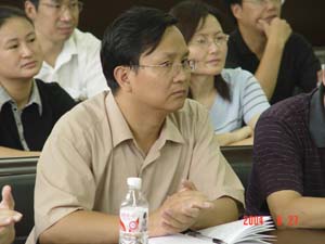 副校长周德俭教授代表因病不能到会的陈大克校长讲话,他代表全校师生对新教师的加盟表示热烈欢迎。在简要介绍了学校发展的历史、现状及未来发展前景后,周副校长对新教师提出了几点期望。1、要正确认识自己的工作单位,学校处在快速发展时期,也是艰苦的创业时期,新教师既有无限机遇,也要同全校师生一道,克服前进中的暂时困难;2、要正确评价自己的工作,热爱自己的工作。教师是崇高的职业,越来越受到社会的尊敬,新教师应珍惜自己的工作岗位,做好本职工作,为培育高素质人才做出贡献; 3、要正确认识和评价自己的优缺点,发挥优势,弥补不足,互相学习;4、要正确认识和评价人生的转折和自己的奋斗目标,把学校发展同自身的追求有机结合起来。