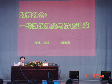 为引导广大青年学生深入学习邓小平理论和“三个代表”重要思想,树立正确的世界观、人生观、价值观和科学的发展观,正确认识国际国内形势,正确理解党和国家的重大方针政策,以实际行动为改革开放和社会主义现代化建设事业贡献力量,我院决定举办理想信念与形势政策专题报告会。 6月11日上午,学院党委副书记唐善茂为我院大学生作了首场形势政策专题报告,题为《和谐社会:一种政治理念与价值追求》。唐副书记在报告中介绍了中央提出构建社会主义和谐社会的时代背景,回顾了中华民族千百年来对和谐社会不懈追求的曲折历程,深入浅出地讲解了社会主义和谐社会的内涵、价值追求、基本特征、如何构建社会主义和谐社会以及在构建社会主义和谐社会的过程中应该避免与防止的错误观念与做法,为大学生们上了一堂生动精彩的形势政策教育课。