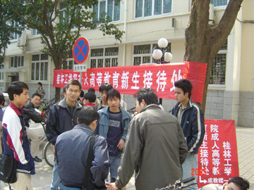 2005年3月5日、6日,我院成教学院的脱产新生陆续报到。这是成教学院继2000级脱产班离校后第一年招脱产班,本次共招5个专业,130多人。5个专业中包括3个两年制专科专业,分别是电脑艺术设计、计算机信息管理、建筑施工与管理;两个四年制本科专业,分别是艺术设计、英语。脱产生的生源遍及全区,还有几名学生来自新疆。